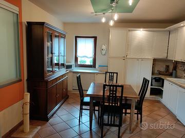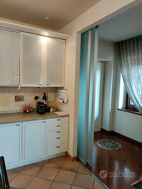 -Cucina m. 4,33 x 4,12, comprensiva di piano cottura a gas in acciaio, cappa Faber con filtro e lavastoviglie NON da incasso, faretti sul TOP superiore, Vano per frigo ma NO frigo, No forno, € 1500.