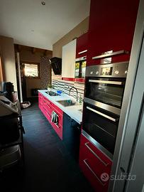 Cucina Ikea in ottimo stato completa di elettrodomestici. Sviluppo di 3.60mt + a parte frigorifero Samsung mobile alto di 60cm. La cucine si compone di mobile alto con doppio forno da incasso, lavastoviglie miele, mobile sottolavello da 69cm e 3 moduli con cassettoni da 60cm. Piano cottura in vetro da 75cm e 3 fuochi. Cappa a vista e due pensili da 60cm con forno a microonde incassato.