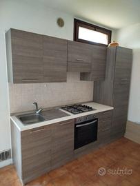 Vendo cucina usata Conforama, modello Chiara colore marrone/grigio effetto legno, in buone condizioni con normali segni di utilizzo, completa di frigorifero con freezer, piano cottura a gas, cappa e lavello. NON incluso forno. Smontaggio e ritiro a carico dell'acquirente. Vendita per cambio casa. Zona Mira (VE).