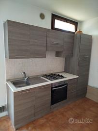 Vendo cucina usata Conforama, modello Chiara colore marrone/grigio effetto legno, in buone condizioni con normali segni di utilizzo, completa di frigorifero con freezer, piano cottura a gas, cappa e lavello. NON incluso forno. Smontaggio e ritiro a carico dell'acquirente. Vendita per cambio casa. Zona Mira (VE).