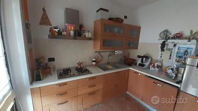 Cucina usata ma ben tenuta. Composta da pensili, cassettoni e mobile per frigorifero da incasso. Elettrodomestici presenti: piano di cottura a gas, cappa, lavastoviglie e lavandino (no miscelatore).