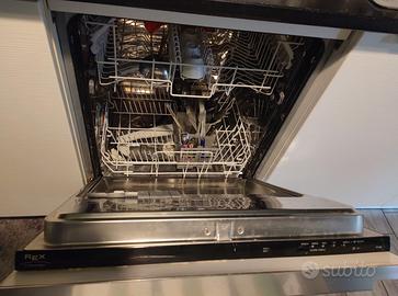 cucina usata di elettrodomestici. Lunghezza 285 cm + colonna forno da 60 cm, parte inferiore bianca effetto legno sia visivo che al tatto parte superiore in vetro nero, maniglie satinate, completa di forno ventilato, lavastoviglie Rex e piano cottura in cristallo Ariston, lavandino 1 vasca e 1/2 piano in pietra nero, cassetti con chiusura rallentata, smontaggio e ritiro a carico dell' acquirente, disponibile da marzo.