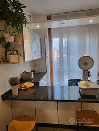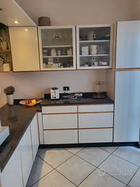 Vendita cucina usata a Gambettola. €490,00, smontaggio e ritiro a carico dell'acquirente. Piano in granito nero come nuovo, fuochi ad induzione e forno perfettamente funzionanti, frigorifero funzionante, ma vecchio, lavello in acciaio. Le colonne dove si trovano fuochi e lavello un po' usurate. L'altra parte delle colonne e la penisola sono in ottimo stato. Misure colonne parte fuochi lunghezza cm 280, altezza cm 206, profondità cm 61, parte di fronte lunghezza cm 184, altezza cm 206, profondità cm 50. Penisola lunghezza cm 184, profondità cm 68.