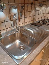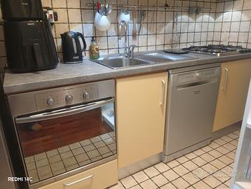 Cucina usata marchio LUBE in buono stato color vaniglia, top in laminato grigio chiaro. Lineare 3 metri, completa di 4 elettrodomestici: frigorifero Samsung (60 cm) combinato No Frost 387 Litri classe A+++ (congelatore 3 cassetti); piano cottura Ariston (60 cm) 4 fuochi a gas; forno elettrico Ariston (60 cm) ventilato, statico, grill; lavastoviglie Hotpoint Ariston (60 cm) 14 coperti classe A++. Lavello e miscelatore Ideal Standard in acciaio, modulo sottolavello 45 cm. Montaggio e trasporto a cura dell’acquirente. Disponibilità: metà di maggio. Prezzo trattabile