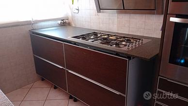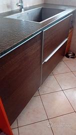 vendo cucina in wengè con due moduli da 196 cm l uno, così composta: gas 5 fuochi 87 x 51 cm, lavandino 86 x 45 cm. Sotto al gas ci sono due cassetti contenitori (con vano posate) da 90 cm ciascuno. Idem sotto al lavandino, per un totale di 6 cassetti. a fianco al lavandino a sinistra vano lavastoviglie (senza lavastoviglie)da 60 cm. 800 euro trattabili. Smontaggio a carico dell acquirente.