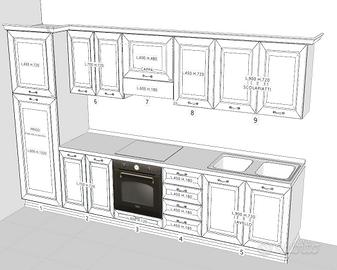 Cucina usata come da foto con misure come da disegno compravendita tra privati formula visto e piaciuto non è prevista ne spedizione ne consegna solo ritiro a carico dell'acquirente