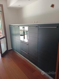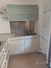 vendo cucina Varenna come nuova, completa di elettrodomestici Whirlpool (lavastoviglie forno frigorifero congelatore piano cottura e cappa di aspirazione) e 2 sgabelli. La cucina è in pronta consegna, già smontata in deposito. Montaggio a vostro carico (posso fornire eventualmente contatto del montatore). le misure sono 3 m larghezza mobile grigio, 2 metri cirva profondità (lunghezza penisola).