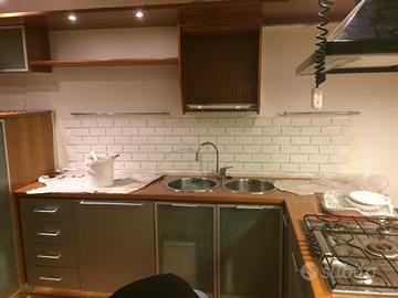 Cucina angolare compresa di piano cottura a 5 fuochi, forno e cappa. Metri lineari circa 8.