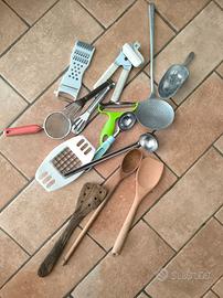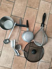 Oggettistica vintage da cucina, pentolino, schiumarola,passino,mestoli,cucchiarelle etc etc.con segni di usura del tempo.Vendo possibilmente in blocco.