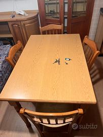 Inclusi tavolo allungabile con 4 sedie e vetrina coordinata.
