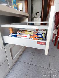 Vendo cucina con le seguenti misure: Angolo cottura cm 270 Colonna frigo/freezer e dispensa cm 120 4 sedie + tavolo 120x60 In legno bianca e rossa