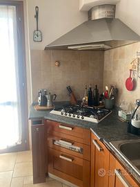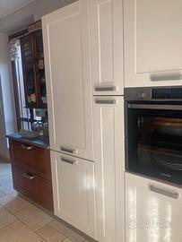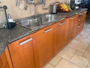 Cucina ciliegio e color avorio Veneta cucine+ cappa angolo + piano cottura smeg+acquaio acciaio Foster design con accessori+ top pietra lato corto cucina. Usata ma tenuta bene e visionabile. La cucina verrà smontata i primi di novembre e potrà essere consegnata all’acquirente e rimontata ( spese a metà).