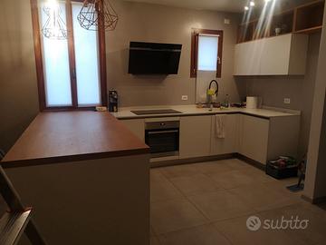 Gli elettodomestici inclusi sono : forno elettrico Electrolux, fornello ad induzione Bosch 4 fuochi, cappa Elica con filtro e lavastoviglie con cestello posate Electrolux. Misure ingombro della cucina : piano centrale 392 cm, lato corto 136 cm, penisola 250 cm. Smontaggio e trasporto a carico dell'acquirente. Prezzo trattabile.