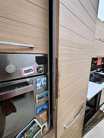 Completa di elettrodomestici funzionanti (forno,frigo,freezer,lavastoviglie,piano cottura,cappa) presenta segni di usura specialmente nel rivestimento. Gli interni sono in condizioni più che soddisfacenti. Per il piano cottura andrebbero sostituiti gli ugelli poiché difettosi (ma regolarmente funzionanti).