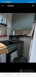 cucina verde salvia con base e piano a induzione e forno e cassetti , 2 mobili di cui uno solo ripiani e uno con scolapiatti e ripiani . smontaggio e trasporto a carico dell'acquirente.