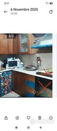 CUCINA COMPONIBILE IN CILIEGIO , CASSETTI E CAPPA COLOR AVION, USATA MA TENUTA BENE!