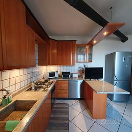 Vendo cucina inizio anni '90 in noce, con penisola, piano di lavoro in marmo. Elettrodomestici inclusi: fornello Ariston a 5 fuochi + 1 elettrico, forno Ariston. Elettrodomestici NON inclusi: frigorifero, microonde, friggitrice, lavastoviglie. Lunghezza 4 metri, altezza 2,5 metri. Lunghezza penisola 1,8 metri, larga 70 cm. Larghezza da muro lavello a penisola compresa 2,35 metri. In discrete condizioni con segni di usura. Si trova al primo piano. Completamente da smontare. Disponibile a partire da metà aprile 2026.
