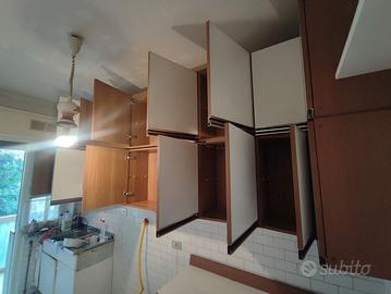 Vendo cucina lineare vintage, originale anni ’70-’80, in laminato bianco con profili effetto legno e struttura solida.