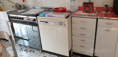 Cucina vintage anni 70 sviluppata su 2 lati con le misure i pezzi qui elencati: