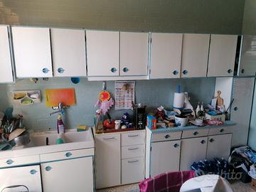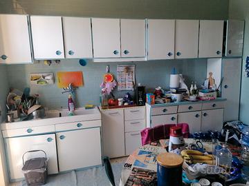 Vendo cucina in formica bianca e celeste, ben tenuta, degli anni 60.