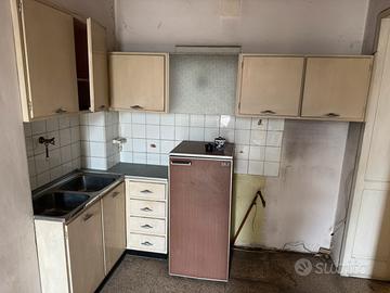 Cucina anni 70, verniciabile a proprio gusto. Di piccole dimensioni ideale x un mini od appartamenti di montagna.