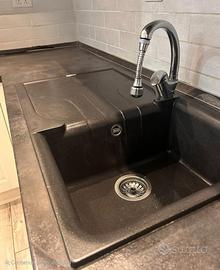 *Lavello e Miscelatore:* Lavello a una vasca in materiale composito granitek lc.
