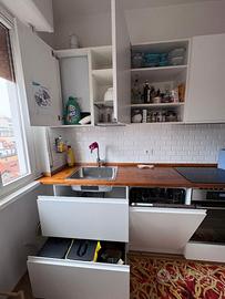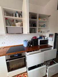 Vendesi cucina Ikea modello Voxtorp del 2019. Laccato bianco con piano in puro legno (da falegname) alto 3cm. Lunghezza parete moduli / pensili: 3.2m (piu spalletta extra 15cm) Larghezza colonna frigo: 1m (+spalletta extra 11cm) Parete: Altezza mobili 80cm + Zoccolino 8cm. Altezza pensili 80cm Colonna frigo: Altezza 2,20cm + Zoccolino 8cm Lavello in acciaio inox 56x52 Elettrodomestici inclusi: Lavastoviglie Skinande NN Forno Kulinarisk con anche cottura a vapore Cappa Underverk Piano Induzione Otrolig: Frigorifero Electrolux da incasso LNS5Le18s (in garanzia fino a Settembre 2027 - costo 700€) La cucina sarà disponibile per il ritiro a partire da metà maggio. Verrà chiesta una caparra confirmatoria