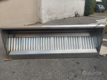 N. 2 cucine da 4 fuochi e un cuocipaste con 2 vasche misura lunghezza 70 cm. larghezza 3 mt. e 1 cappa altezza 80 cm. lunghezza 45 cm.