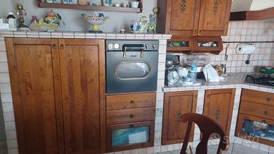 Cucina Zaccariotto in finta muratura ,prende 2 pareti , la prima parete di 2 m e 70 mentre la seconda parete 1 m. e 70. IL tavolo chiuso da 1 m. e 60 ,una volta aperto diventa lungo 3 metri e mezzo e 8 sedie quasi nuove. E’ in ottime condizioni, sportelli e dispensa in legno pregiato con delicatissime decorazioni … vendo a malincuore per cambio abitazione .