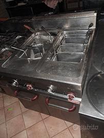 cucine a 4 fuochi, cucina a 6 fuochi con forno, bollitore 50litri vasche separate,piastra funzionante a metà da sistemare,friggitrice 25 litri...tutto in perfette condizioni e funzionante...abbiamo anche altri pezzi per informazioni contattatemi