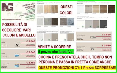 CUCINE NUOVE A PREZZI STOCK VARI MODELLI E COLORI possibilità di modificare la composizione da dx a sx ed anche aggiungere nuovi elementi e naturalmente il prezzo di €.100,00 è simbolico POI lo farete Voi con la Vostra scelta e grandezza della Vostra nuova cucina, info 337469920 anche WhatsApp - non rispondete con l’automatico che dà la mail altrimenti non avrete risposta.