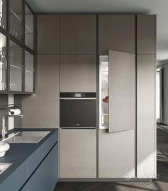 Potrete scegliere tra un'ampia gamma di materiali per colori e finiture: Gres, Laminato, Legno, Impiallacciato, Laccato, Cannettato, HPL, Fenix, Laccato Metallico, Inox, Vetro e Specchio.