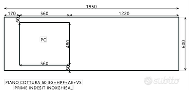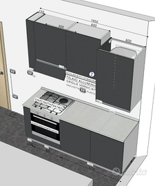 Cucinino 195x60 con forno ventilato e fuochi gas