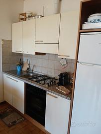 cucinotto in buono stato completo di lavandino in acciaio, fornelli con forno frigorifero con freezer lunghezza metri 2.75 colore chiaro. mandate un messaggio .