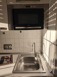 - Forno a microonde Whirlpool (incassato nei pensili superiori) colore acciaio inox - AMW 4990/IX con funzione Jet Defrost (per sbrinare i cibi congelati in modo rapido e uniforme) e funzione di cottura a vapore. Capacità di 22 litri.
