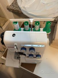 Macchina cucitrice 1/2 aghi 3-4 fili convertibili, trasporto con differenziale, velocità massima di 1.300 punti al minuto, rilascio della tensione manule, esegue lavorazioni sia con 1/2 aghi e 4 fili, e 1 ago e 3 fili, orlino stretto, portatile, e maneggevole.