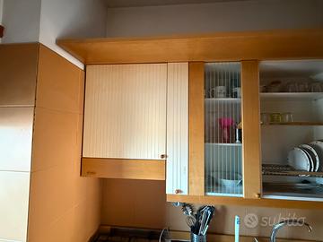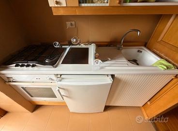 Cucina in buone condizioni. 1,8m x 0,87 m Forno Maccina gas Lavandina ceramica Pensili bianco e legno in legno