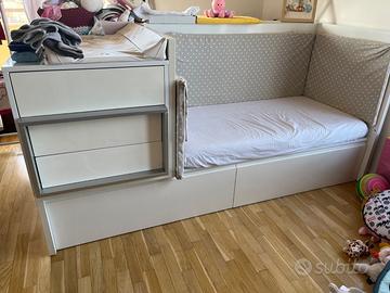 Culla con cassettoni, cassettiera, ripiani e fasciatoio trasformabile in cameretta completa di letto singolo scrivania cassettiera mensole e comodino