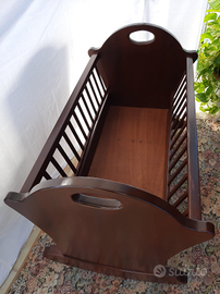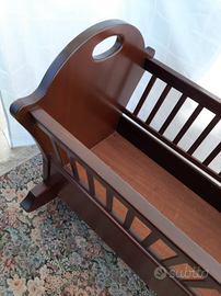 Culla artigianale a dondolo, in vero legno di noce. Fatta a mano dal falegname, unica nel suo genere. Usata poco. Culla da 0 (zero) a 12 mesi. Regalo il materassino, in omaggio (pulito , ovviamente)