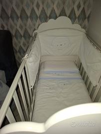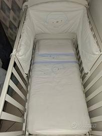 culla in ottimo stato anche per il poco utilizzo, Completa di materasso cuscino lenzuola caldo cotone e lenzuola cotone fresco due copri materasso, piumone e Paracolpi.