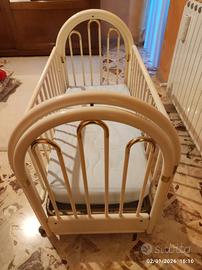 Vendo culla laccata bianco con inserti dorati di dimensione cm 145 x 72 con materassino in Aloe quasi nuovo.