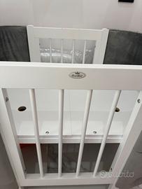 Culla mai utilizzata senza segni di usura Diventa un lettino . Completa di materassino e prolungamento del materassino Completa delle due staffe per farlo diventare un lettino Porta le ruote per spostarlo facilmente Completamente imbottita.