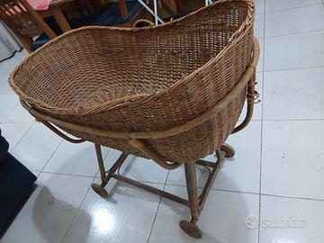 culla d'epoca in vimini e legno