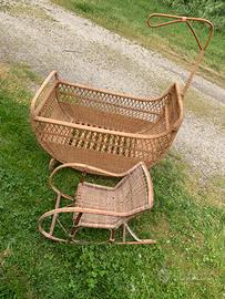 Vendo culla e sedia a dondolo rattan vintage La culla é con le rotelle