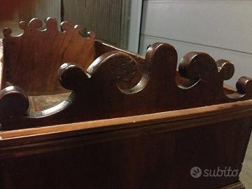 Splendida Culla in noce e pioppo, antiquariato d'epoca fine '700. restaurata e perfettamente conservata. Da arredamento, anche come fioriera o mobile bar.
