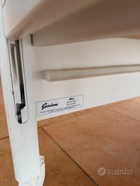 Lettino Alice Giordani, completo di materasso in ottime condizioni. Ruote girevoli, freni. La sponda destra si abbassa. Dimensioni culla 130x71cm, materasso 125x62cm.