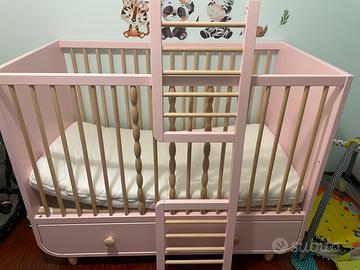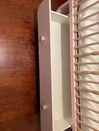 In vendita culla ikea in legno rosa con sponda regolabile e matesasso sfoderabile. Con Pratico cassettone.