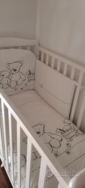 Nuovissima culla bianca in legno ( mai usata )unisce stile contemporaneo e funzionalità per offrire al tuo piccolo un rifugio accogliente. Realizzata con materiali di alta qualità, questa culla aggiunge un tocco di eleganza moderna alla nursery decorata da un grazioso orsetto. Sotto ha anche un cassetto per riporre vestiti o coperte! Perfetta per chi ama l'estetica contemporanea senza rinunciare alla sicurezza e al comfort, completa di piumone e paracolpi anch'essi mai usati!!! Acquistata 930€