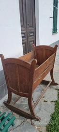 vendo. culla ani 40 /50in legno massello in perfette. condizionii altezza 90 lunghezza 110 larghezza 53 peso kg 14 molto bella e rara dalle dimensioni .