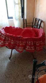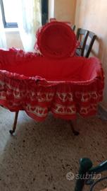 Culla in legno vintage lavorato a mano con 4 ruote ottima per collezionisti.
